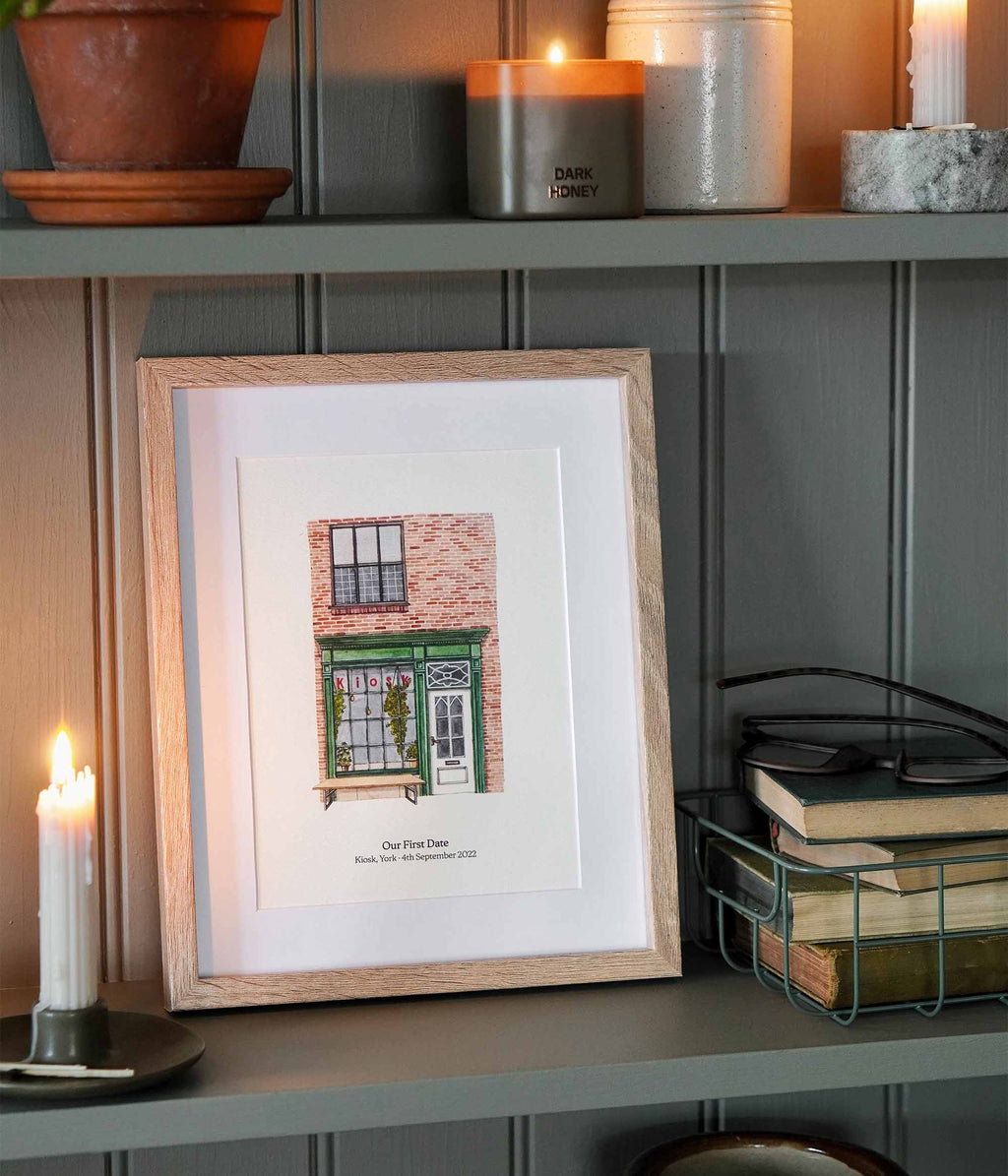 All of our prints in A5-A3 are available in you choice of white or black frame. A4 prints are also available in a pale wood frame.